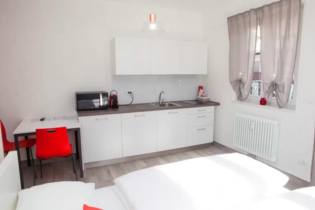 Ampie e luminose camere singole, arredate secondo le tendenze moderne e giovanili, con bagno privato. È presente anche una zona studio che permette la massima concentrazione. Direttamente in centro!