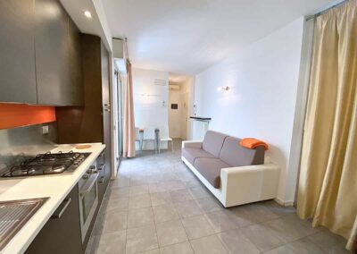 La struttura dispone di 15 appartamenti indipendenti, ciascuno dotato di bagno privato, angolo cottura, area soggiorno e balcone o terrazza, per garantire il massimo comfort, privacy e autonomia.